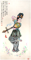 Niang Ying suona il liuto in senso opposto Il liuto è uno strumento a corde che vengono pizzicatesu una tastiera. Il dipinto ritrae la bellissima Ying Niang che suona il liuto ...